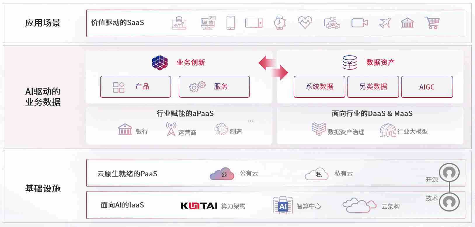 数字时代,,围绕企业数字化转型的关键要素,,J9娱乐数码开创性的提出数云融合战略和技术体系框架,,,着力在云原生、、、数字原生、、AI原生和信创产业上架构产品和服务能力,,,,为处在不同数字化转型阶段的快消零售、、、汽车、、、、金融、、、、医疗、、、、政企、、教育、、运营商等行业客户提供泛在的敏捷IT能力和融合的数据驱动能力,,,构建跨界融合创新的数字业务场景和新业务模式,,,助力企业级客户建立面向未来的核心能力和竞争优势,,,,全面推动社会的数字化、、、、智能化转型升级。。。