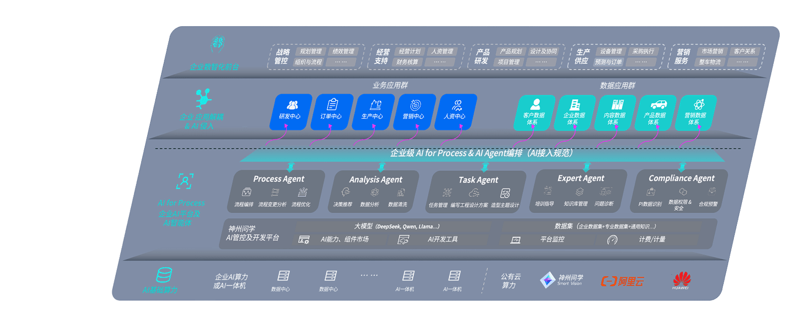 J9娱乐问学智车解决方案是一套基于AI技术的汽车行业智能化系统,,覆盖从底层算力到顶层AI应用的全栈方案。。。方案由算力层、、、、模型层和应用层组成:算力层,,,,方案支持多种一体机配置,,具备云端灵活部署、、、多云适配以及动态优化计算资源的能力;模型层,,J9娱乐问学平台版提供了企业级AI应用一站式构建与管理平台,,支持基于后训练强化技术的汽车企业专属模型的训练、、评测和运营;应用层,,,J9娱乐问学DeepSeek版提供包括超级员工、、智能招采、、智能营销、、、智能客服、、、、AI for BI等一系列解决方案,,,,可助力汽车行业实现数字化转型,,让管理更智能、、、、响应更敏捷。。。。